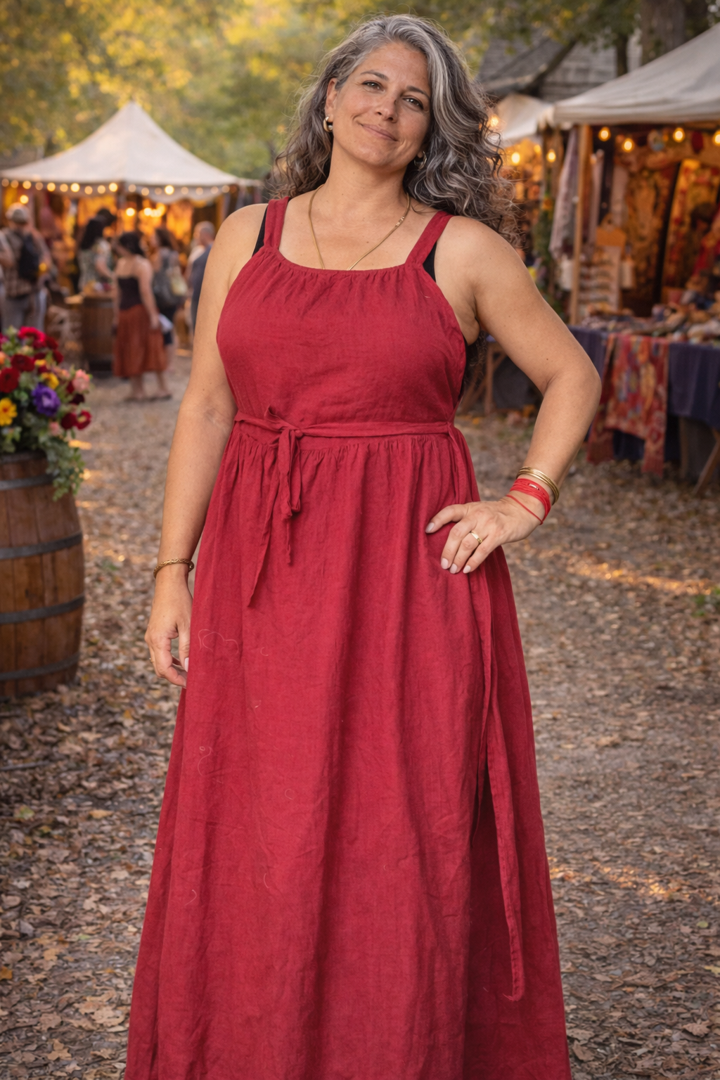 The Apron Dress is a timeless, flattering silhouette inspired by historical workwear and reimagined for modern festival life. Designed with a softly gathered bodice, adjustable tie waist, and flowing skirt, this dress offers comfort, movement, and effortless style.